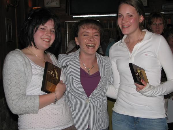 You are here: Newsletters > July 2006 > Volunteers of the Year named at Recognition Dinner ERRI's annual Volunteer Recognition Dinner supplied food, fun and surprises to the 32 volunteers and guests who attended. Held at the An Poitin Stil in Timonium for the 3rd year, the dinner gave volunteers a chance to relax and dress up for some "clean" fun as opposed to the dirty work usually done at the farm. The 2006 Volunteers of the Year were also announced. This year's winners were Hannah and Abby Ziegler who have volunteered since 2000. Hannah, who graduated from Hereford High School in May, and her sister Abby, who will be a senior at Hereford next year, have helped with everything from special events, to feeding, to retraining rescues, to grooming, to installing fencing. ERRI Advisory Board President and dinner emcee Laura Wade Baier said, "While we know each of them will a take very different track into the horse-business future, we know their knowledge and sensitivity will demonstrate to others how horses should be revered and cherished." Baier was also honored with a Volunteer of the Year Award by ERRI Founder Debbie Rollins Frank. "We did this behind her back," said Frank. Baier has volunteered with ERRI since March 2000 and in addition to serving as the Advisory Board President for the past 4 years, has also sat on the Board of Directors. She has worked with rehabilitating and training rescues, published the ERRI newsletter since 2001, and has been instrumental in putting together special events like the Shawan Downs Benefit. "I'm so touched and very surprised," Baier said. "I do this for the horses." ERRI thanks all the volunteers and guests who made the dinner to much fun! ![]() |