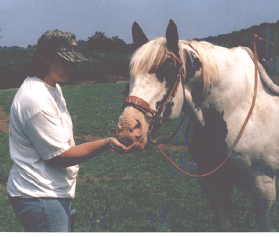 You are here: Success Stories > Love At First Sight by Eileen P. Hollaway Last year while my husband was out of town on a business trip, I fell in love. The object of my affection had large, expressive brown eyes, was tall with a broad chest, and weighed 1300 pounds. His name is Sunny Jetalito, a sorrel Tovero Paint Horse. Sonny, as I call him, had at least two previous owners. His surrender to ERRI may have been due to his physical condition. He was diagnosed with ringbone and stringhalts, two degenerative diseases that restrict his ability to run and jump, therefore, not a good candidate for equestrian eventing. This did not stop me. Like many little girls, I had always wanted a pony, but because of the cost and not having any place to stable one, I was never able to have one. Now 40 plus years later my dream has come true. Since I am not into eventing, his physical problems are no problem. First, I fostered him for a month to make sure that we were suited for each other and that I fully understood and accepted his physical limitations and the cost associated with horse ownership. This fostering program helps everyone who is seriously thinking of adopting a horse. You learn about the horse, his or her personality, medical, and farrier needs and understanding the dedication it takes to own a large animal. Horses are not like dogs or cats. Everything about a horse costs more. You need to make sure that the horse is right for you and you can AFFORD to keep him. Since his adoption, I have been working with his physical conditioning. At first we just did, slow flat ring work and gradually we were able to work up to going up and down hills. Bringing back his muscle tone helped him to even work up to a trot. Now he has been seen galloping in the field with the rest of the geldings. He has even felt well enough to hop into the schooling ring to feed on the grass, which is always better on the other side of the fence. Sonny is just one of many success stories ERRI can report. It is through the hard work and dedication of people like Debbie Frank, her daughter Rhonda Rollins, and the many hard working volunteers at ERRI that horses like Sonny have found new lives with people who care for them and understand any shortcomings the horse may have. Rescues exist because people do not do their homework. Before you think about buying or adopting a horse please do some research, talk to breeders and stable owners about leasing before you buy. Talk to them about the cost of stabling, feeding, grooming, vet services, farrier services, and if you or your child require schooling or the horse requires schooling what that is going to cost. Sonny and I are a great match, a match made in heaven but even heaven can have pitfalls. I hope that I will be the last love Sonny will have in his life. Return to ERRI Home Page |  |   |